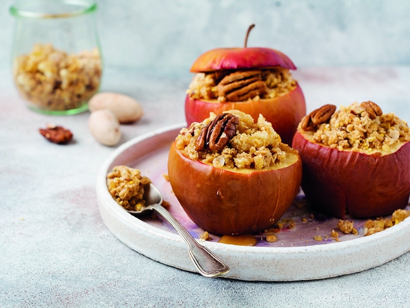 8. Serveer de gevulde appels lauwwarm met een bolletje kaneelijs.