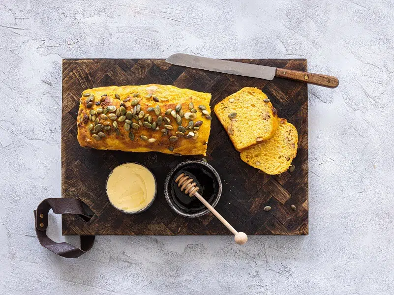 Laat een beetje afkoelen voor je het aansnijdt en serveer met gezouten boter.