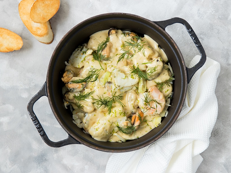 Visstoofpotje met kabeljauw, mosselen en venkel