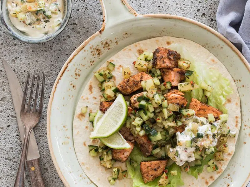 Tortilla wraps met zalm en ananassalsa