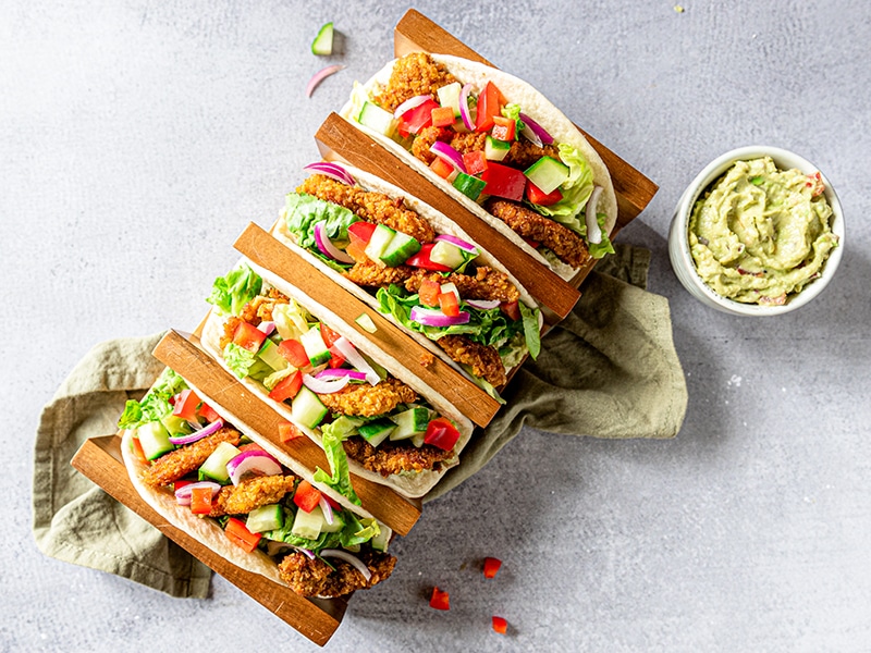 Wraps met krokante kip, paprika en komkommer