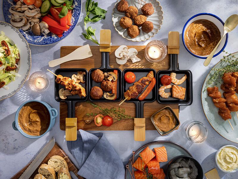 Feestelijke gourmettafel met satésaus