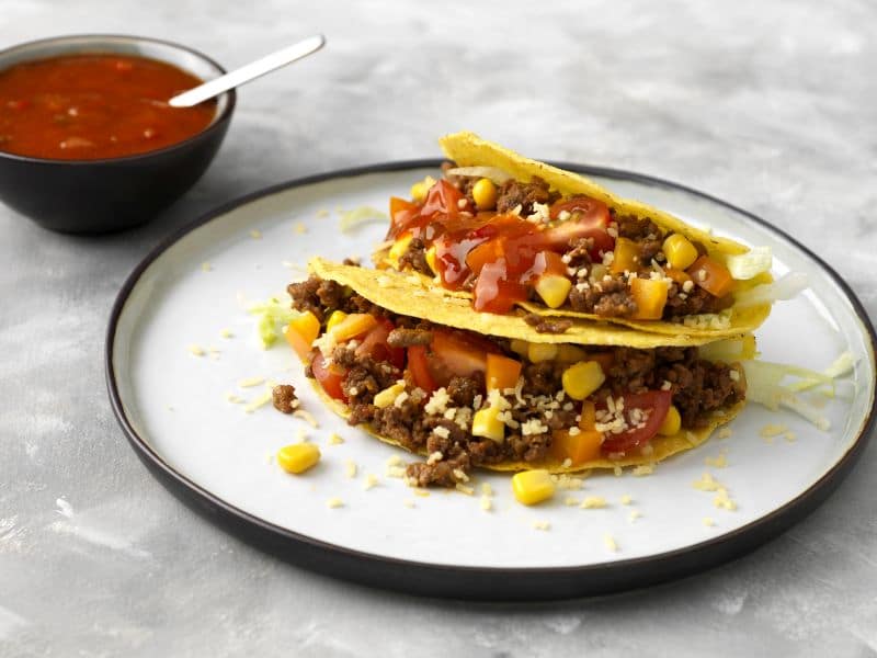 Taco’s met gehakt, groenten en salsa Tex Mex