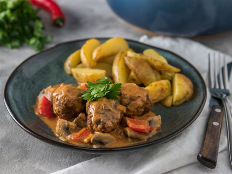 Stroganoff met gehaktballetjes