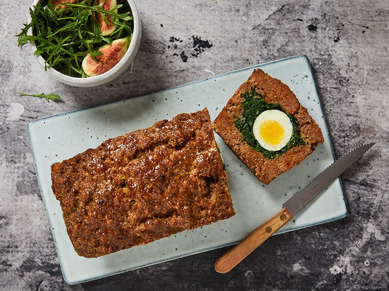 Gehaktbrood met spinazie en ei
