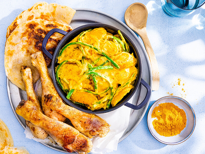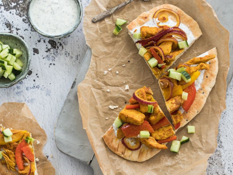 Kipreepjes met yoghurtdressing en naanbrood