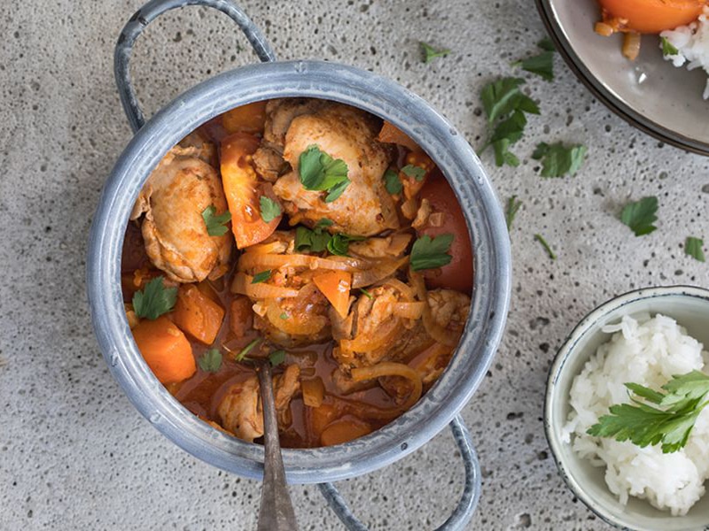Gestoofde kip met pompoen en rijst