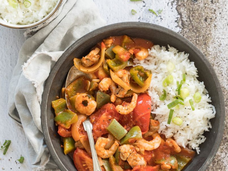 Stoofpot met garnalen en kip