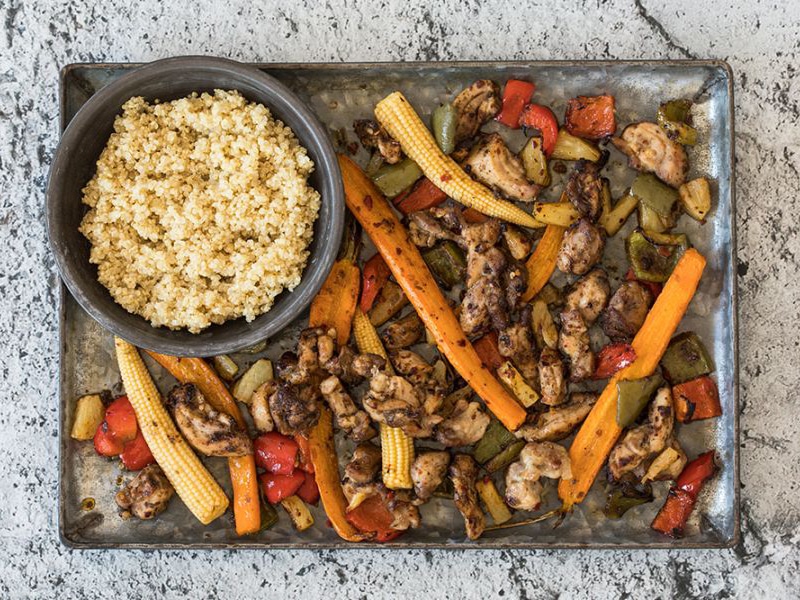 Jamaicaanse kip met groenten uit de oven