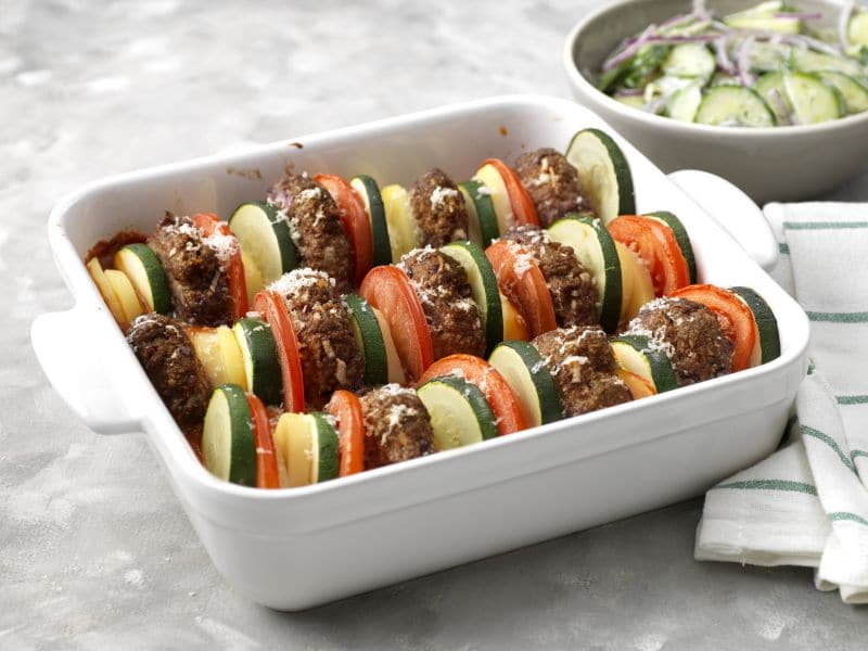 Ovenschotel van gehakt, courgette en tomaat