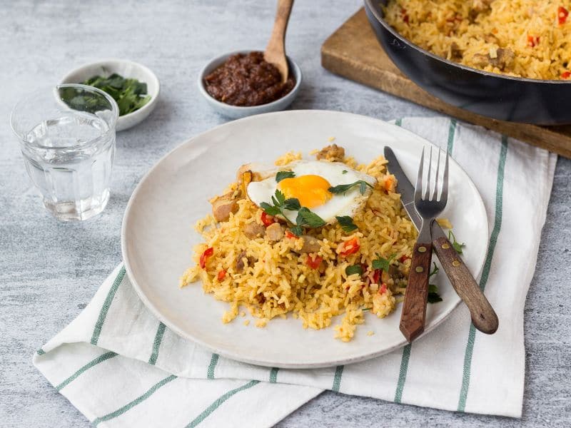 Nasi met kip, ei en satésaus