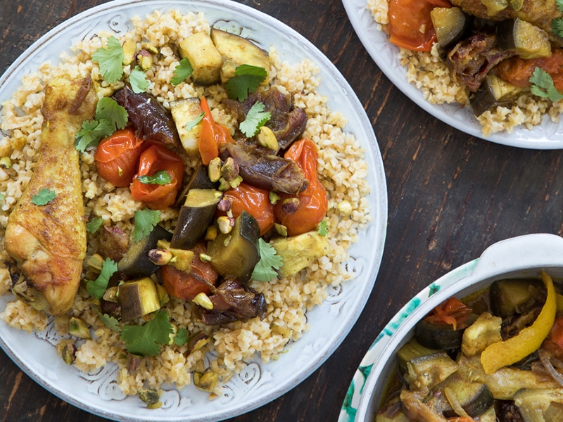 Marokkaanse stoofpot met kip en aubergine