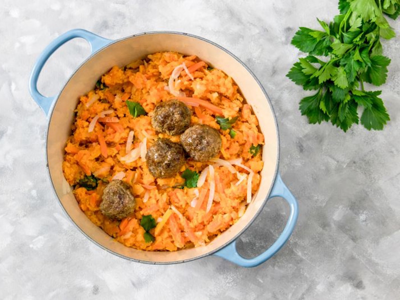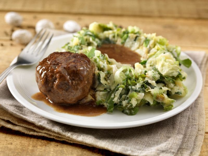 Zoete aardappelstamppot met gehaktballetjes