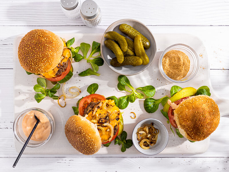 Hamburger met cheddarkaas en ui