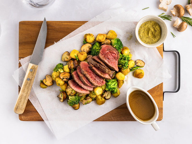Steak met jus en rozemarijn krieltjes