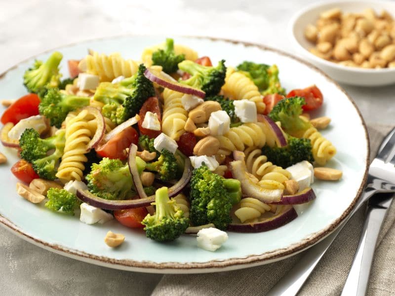 Vegetarische pastasalade met broccoli en geitenkaas