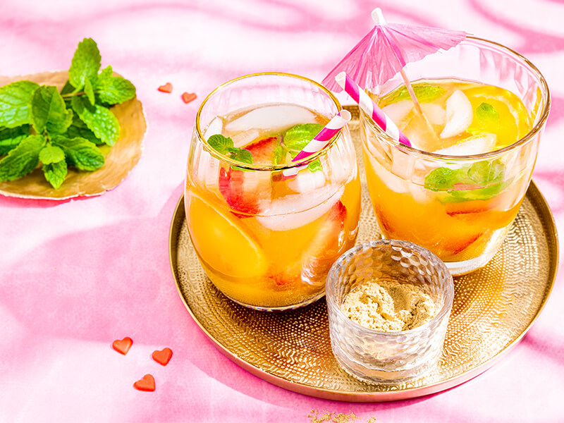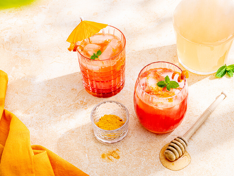 Een heerlijk verfrissende mocktail met honing, kurkuma en bloedsinaasappel. ...