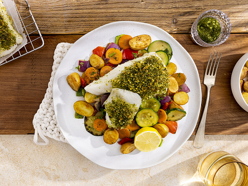 Dit snelle en makkelijke gerecht is ideaal voor een doordeweekse avond. De krokante korst op de kabe ...