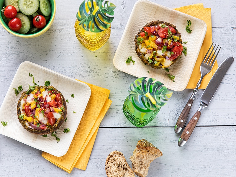 Portobello van de BBQ gevuld met groenten. ...
