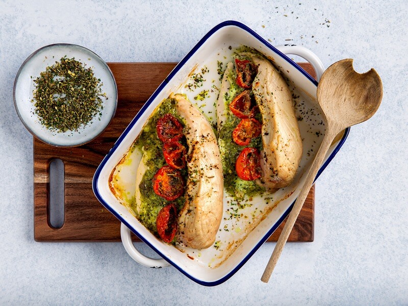 Gevulde kipfilet met mozzarella, tomaat en pesto