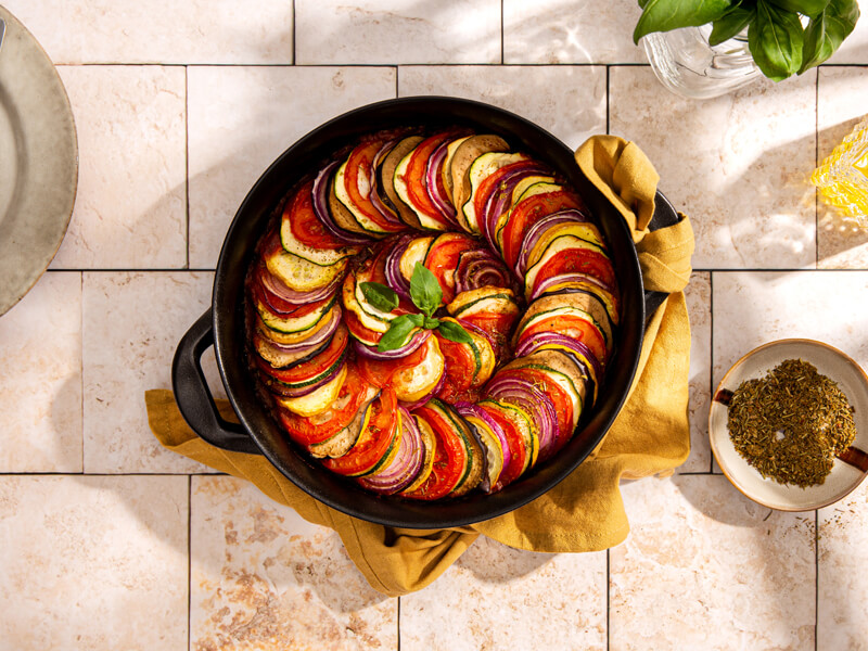 zoete aardappelschotel met parmezaan en tijm