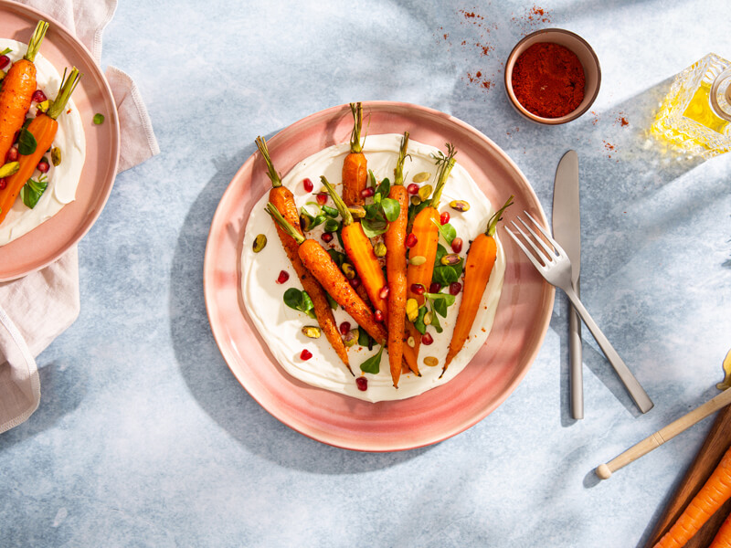 Harissa wortelen met losgeklopte geitenkaas