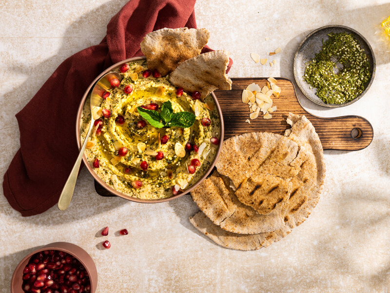 Hummus met Za’atar en flatbread