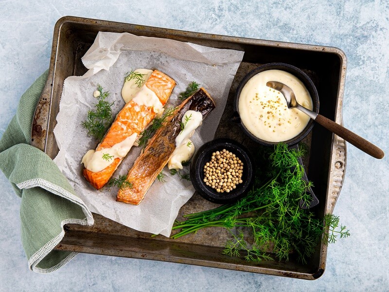 Zalmfilet met witte pepersaus